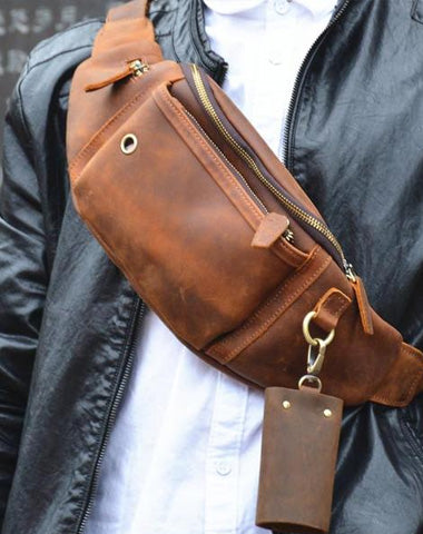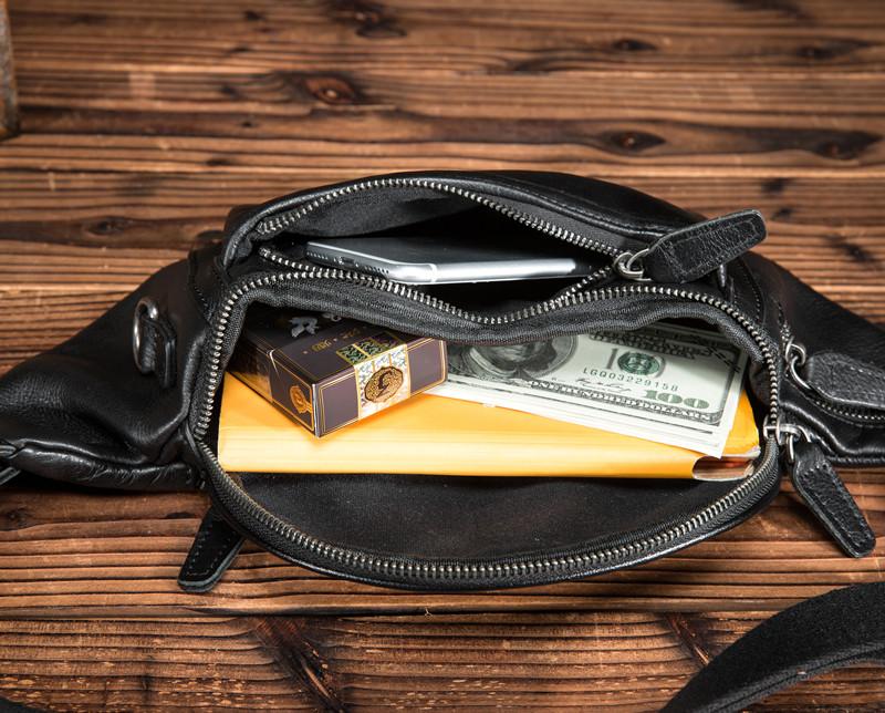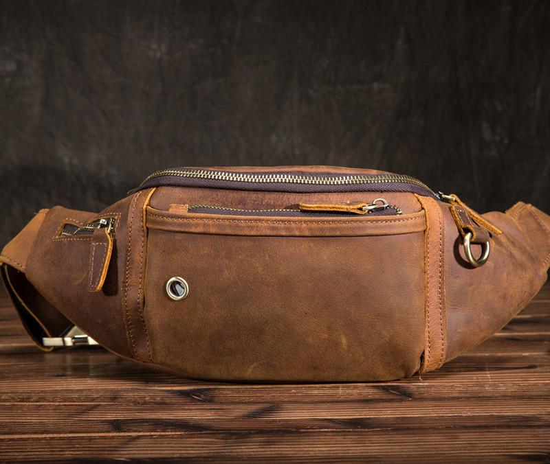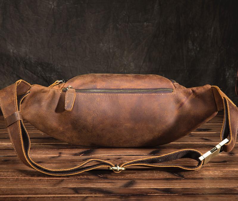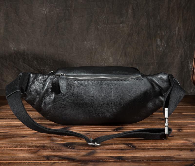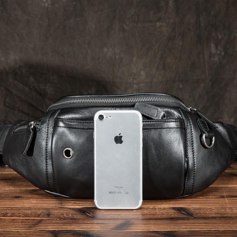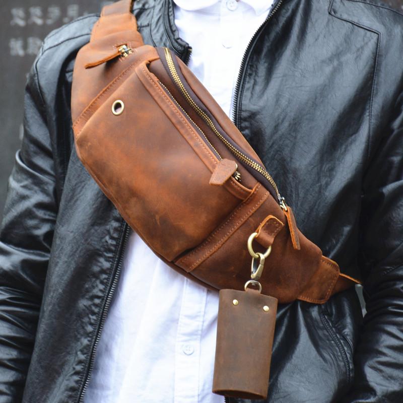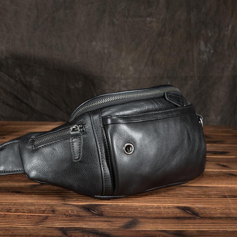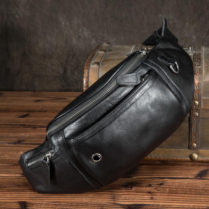 Style: Retro Black and Brown LEATHER MENS FANNY PACK FOR MEN BUMBAG Vintage WAIST BAGS