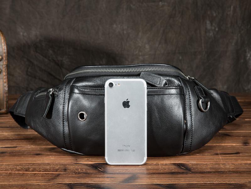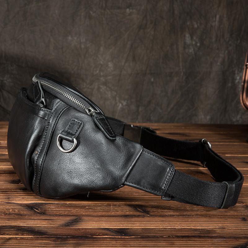 Design: Retro Black and Brown LEATHER MENS FANNY PACK FOR MEN BUMBAG Vintage WAIST BAGS