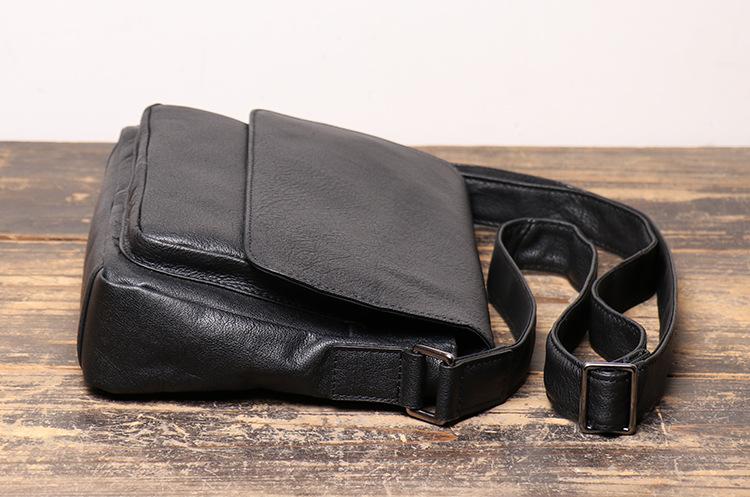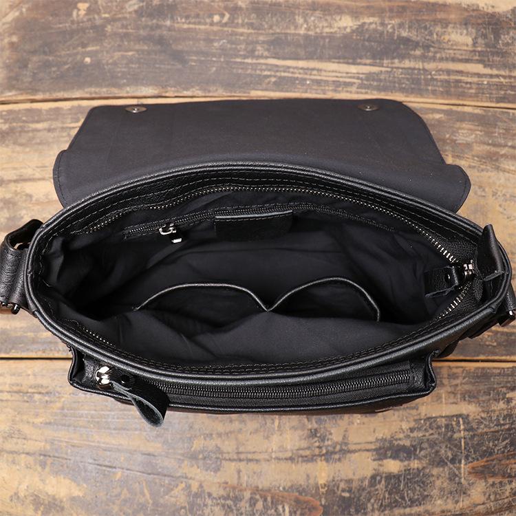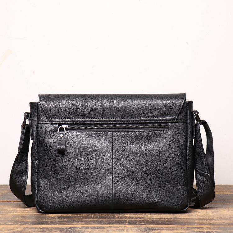 Design: Simple Black Leather 10 inches Large Zipper Messenger Bag Diagonal Bag Shoulder Bag For Men