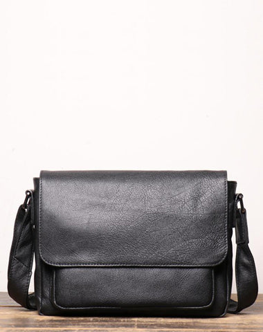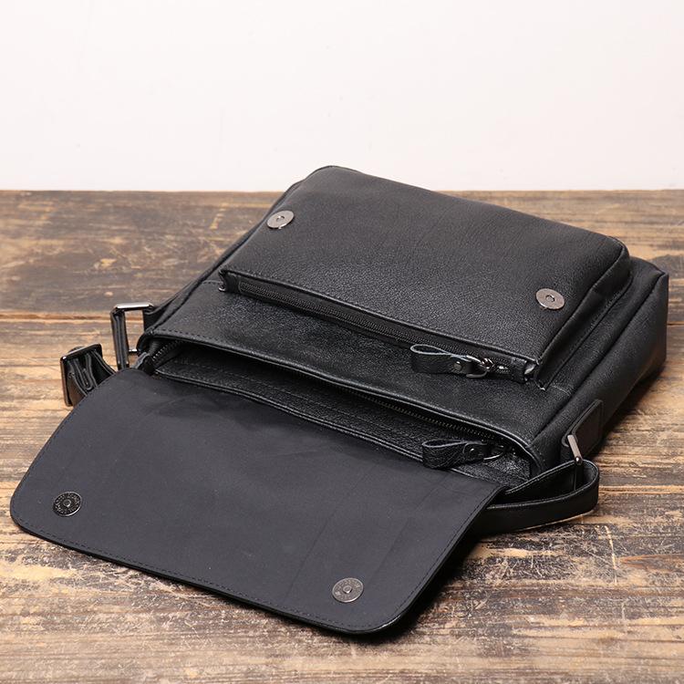 Design: Simple Black Leather 10 inches Large Zipper Messenger Bag Diagonal Bag Shoulder Bag For MenOverview: