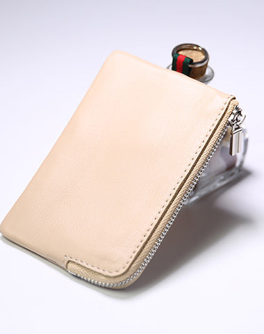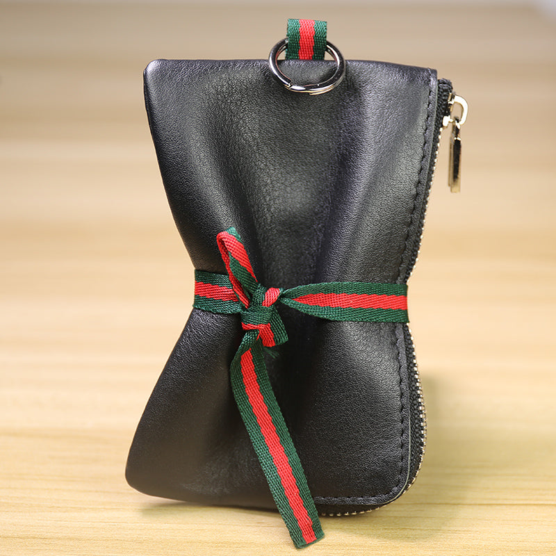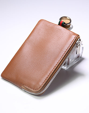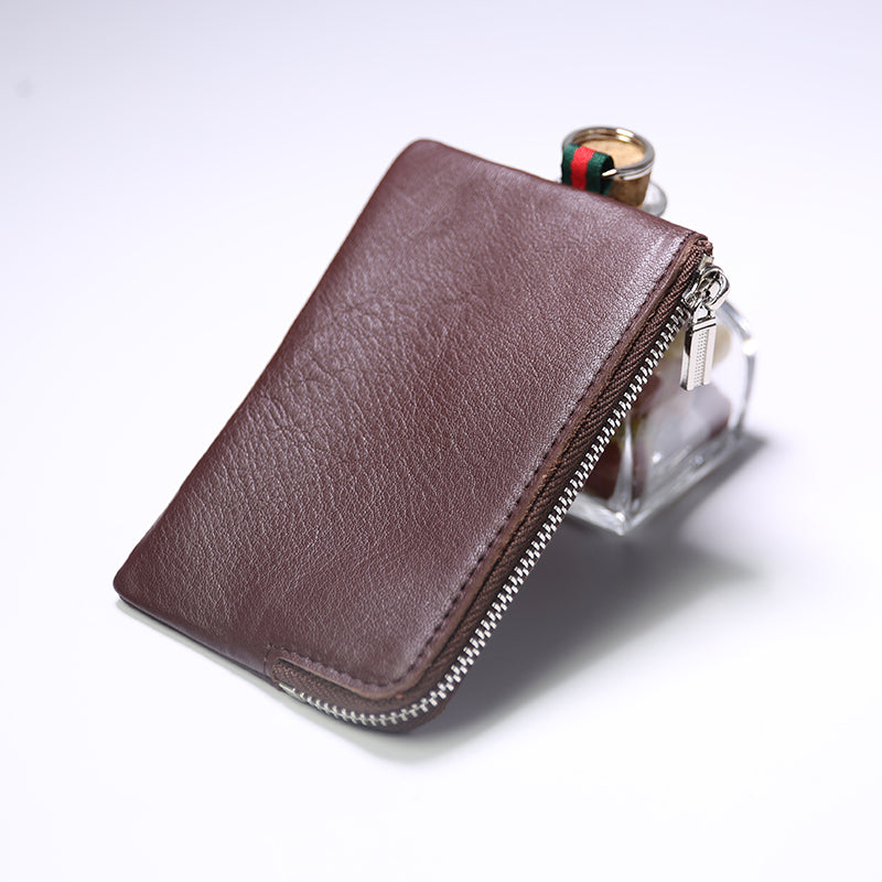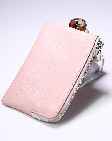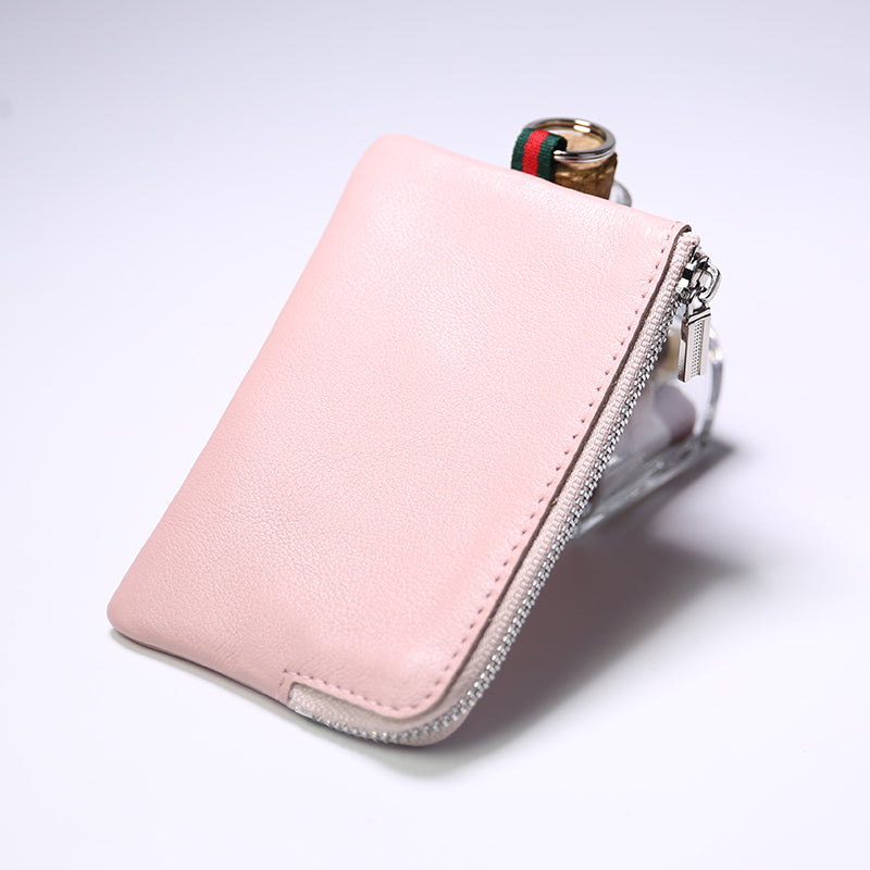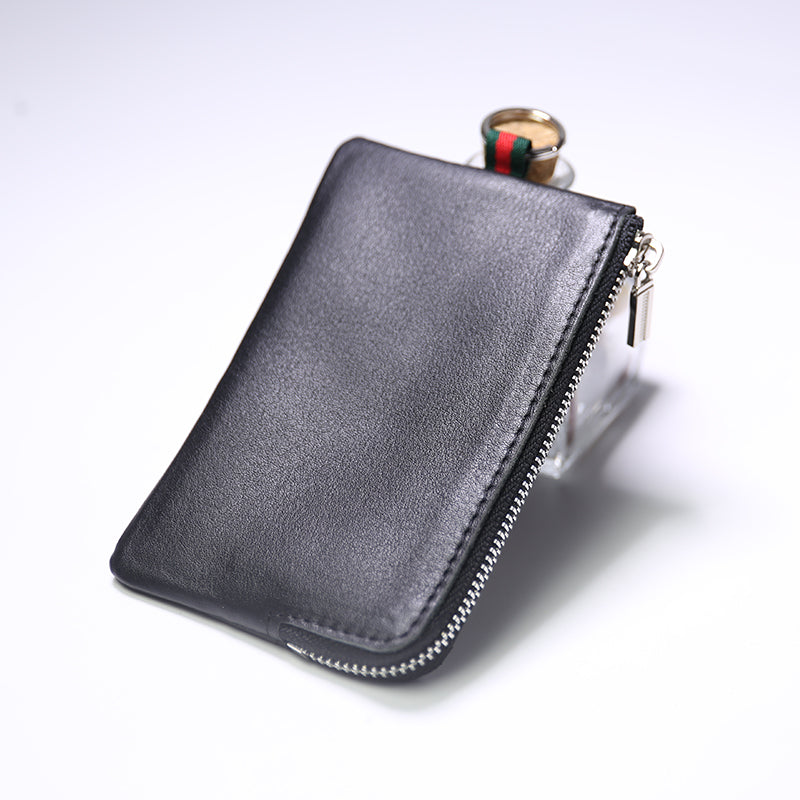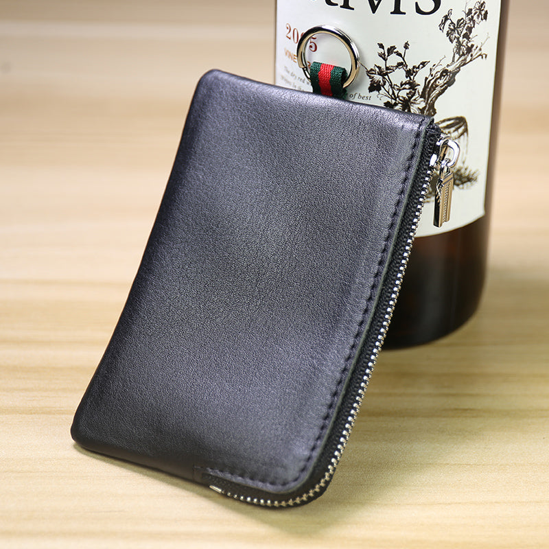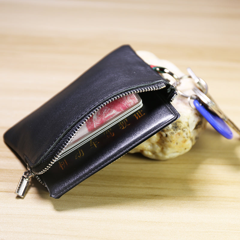 Design: Slim Women Black Leather Zip Wallet with Keychains Billfold Minimalist Coin Wallet Small Zip Change Wallet For Women
