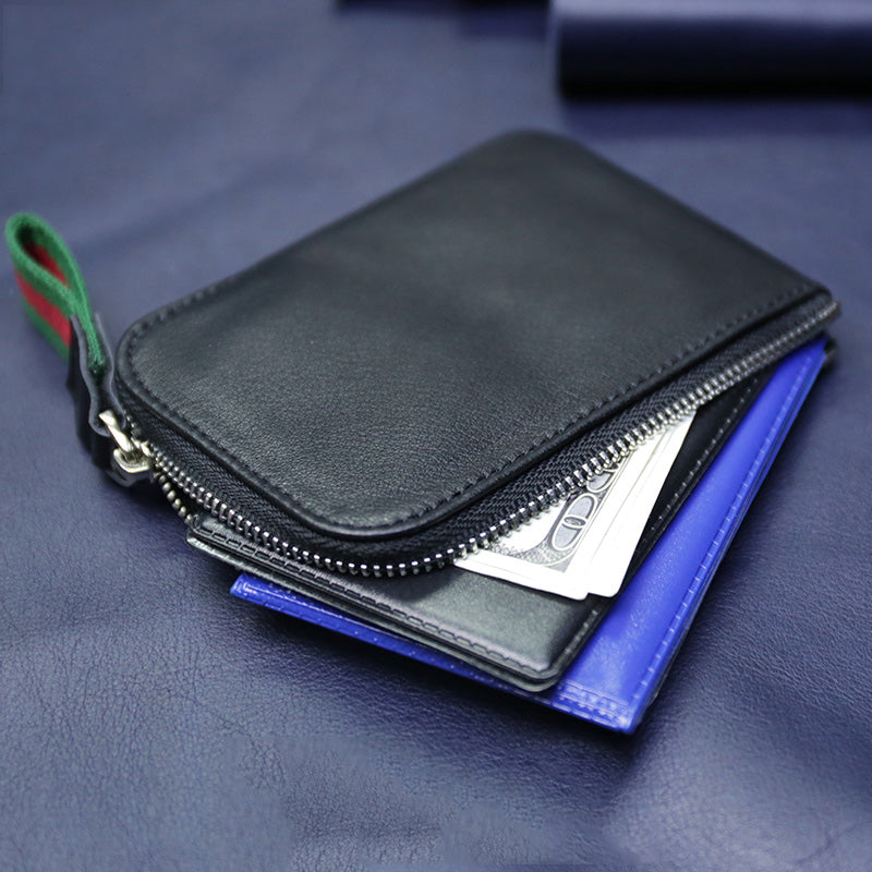 Style: Slim Women Brown Leather Billfold Wallet Small Zip Coin Wallets Zipper Change Wallets For Women