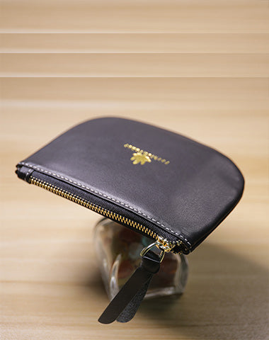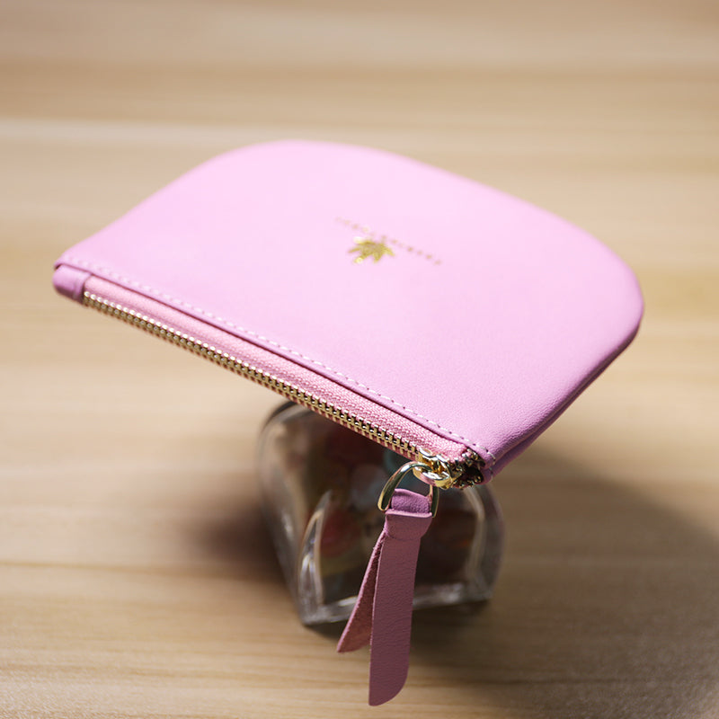 Design: Slim Women Leather Zip Card Wallet Saddle Minimalist Coin Wallet Small Zip Change Wallet For Women