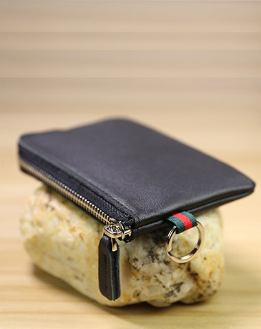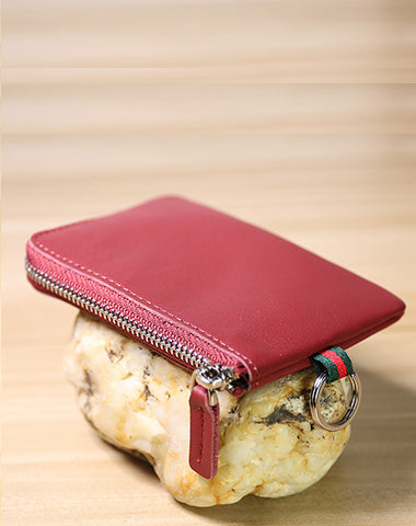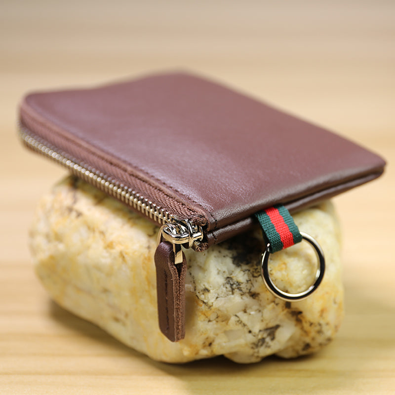 Design: Slim Women Leather Mini Zip Wallet with Keychain Billfold Minimalist Coin Wallet Small Zip Change Wallet For Women