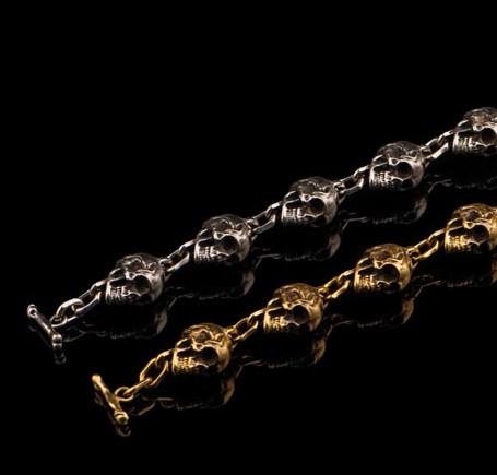 Style: Silver  Brass Stainless Steel Biker Trucker Skull Heavy Gothic Skulls Mens Bracelet Biker Jewelry