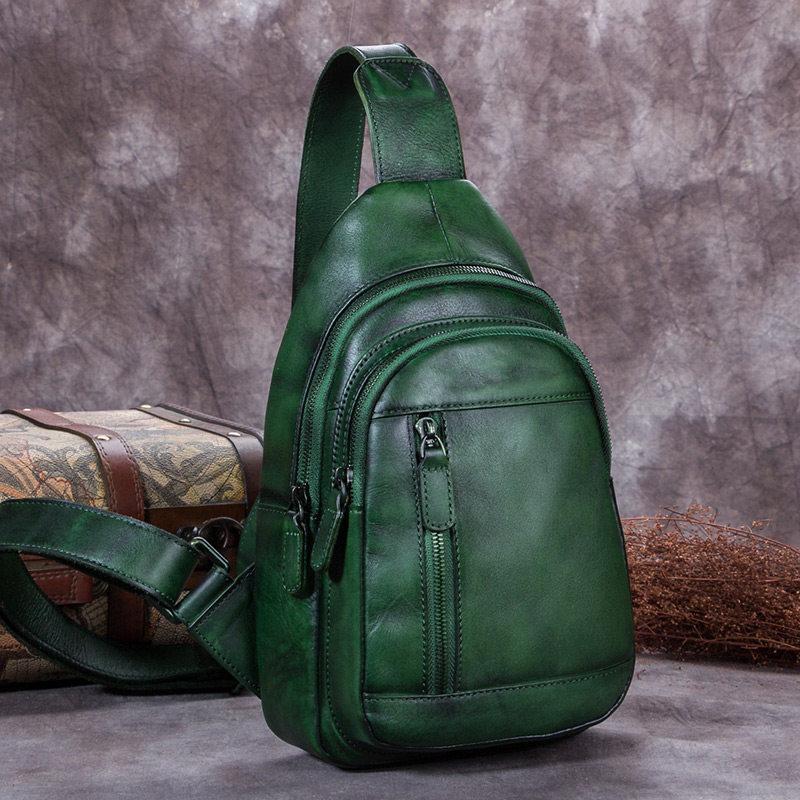 Vintage Gray Mens Leather Sling Bag Chest Bags Purses One Shoulder Backpack for Men