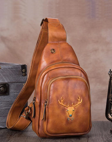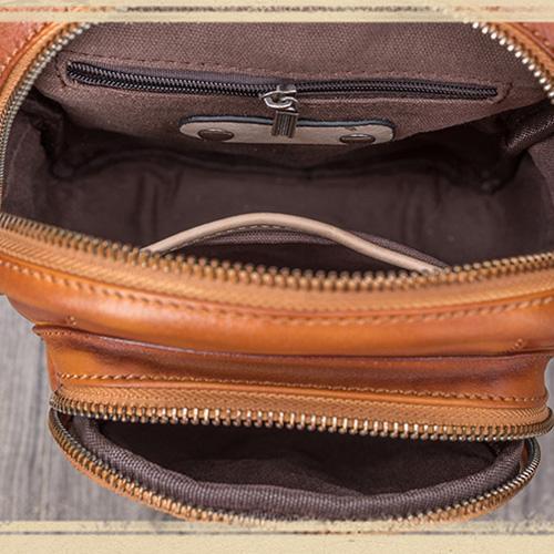 Vintage Brown Womens Leather Sling Bag Chest Bags Purses One Shoulder Backpack for Ladies