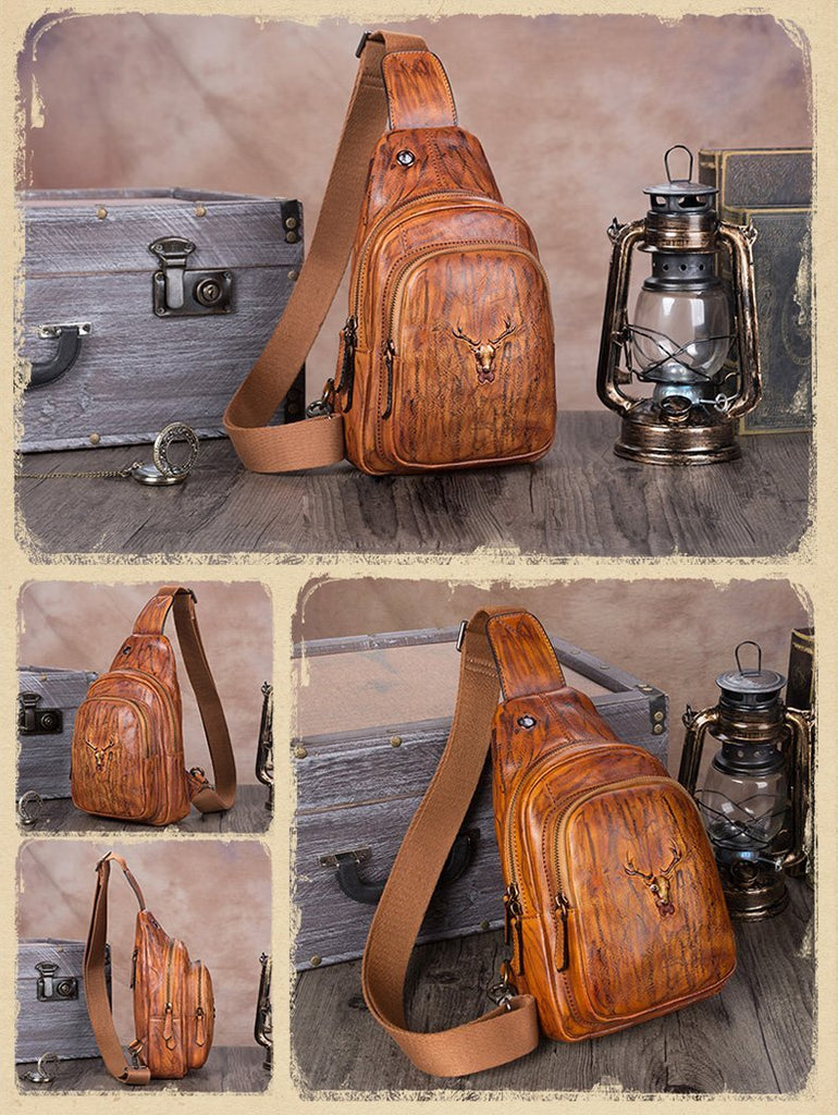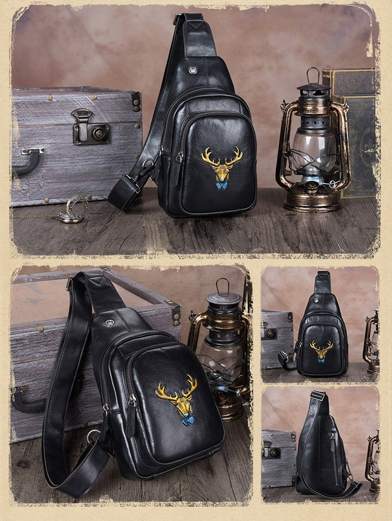 Design: Unisex Genuine Leather Chest Bags Shoulder Crossbody Bags Purses