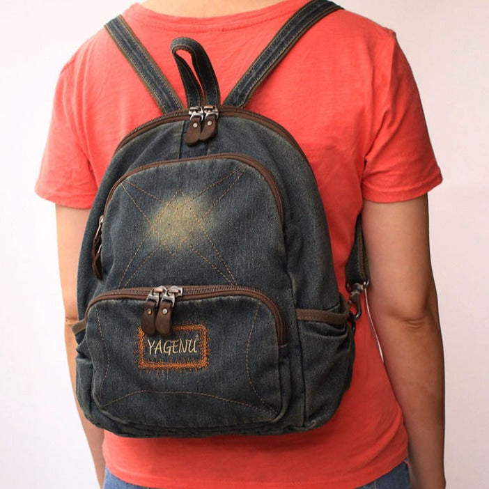 Design: Denim Blue Backpack School Backpack Womens Blue Denim School Rucksack For Women