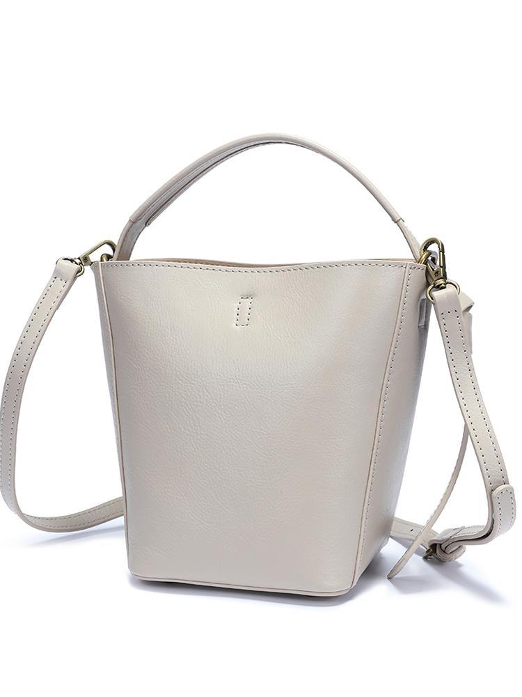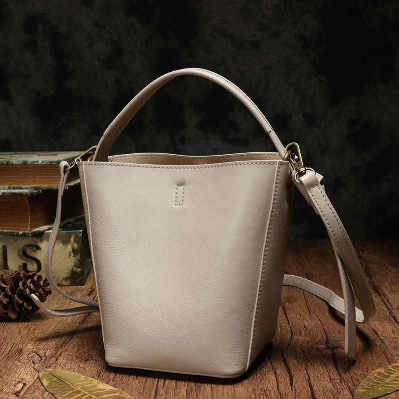Brown Leather Bucket Shoulder Bag Bucket Handbag White Cross Body Barrel Bag for Ladies