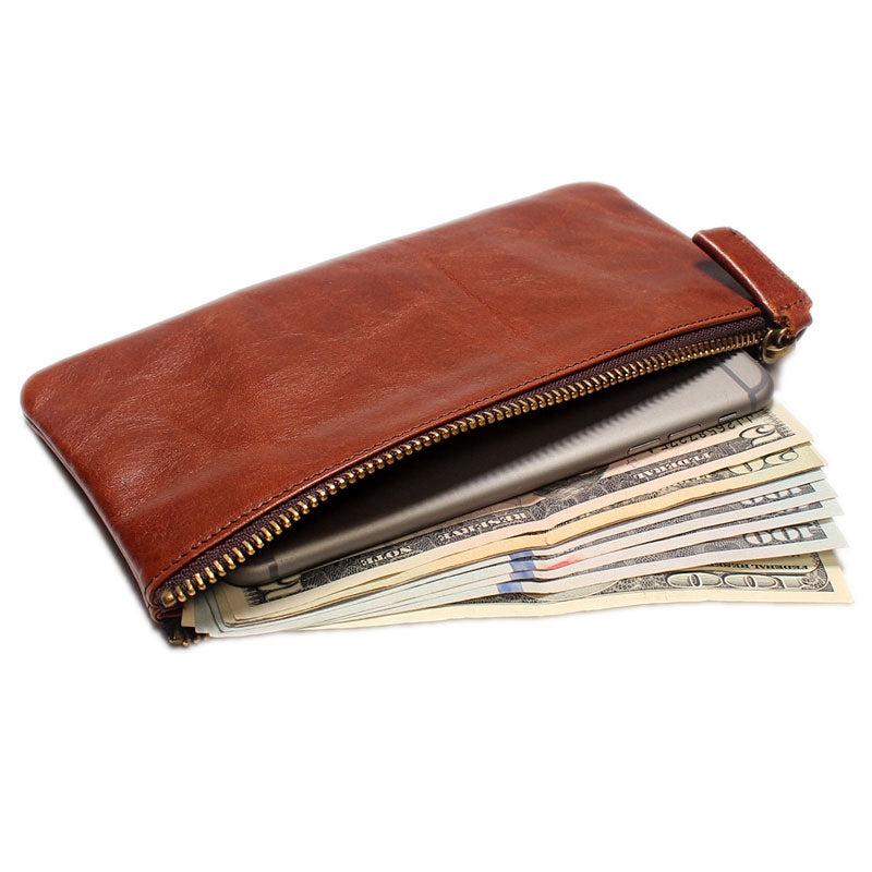 Design: Vintage LEATHER Womens Long Clutch Wallet Zipper Slim Long Wallet FOR Women