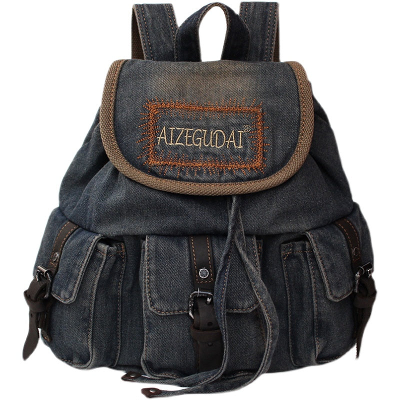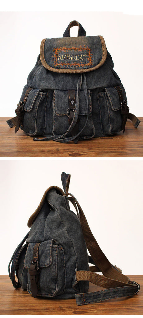 Design: Vintage Womens Denim Backpack School Backpack Blue Denim School Rucksack For Women