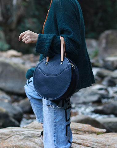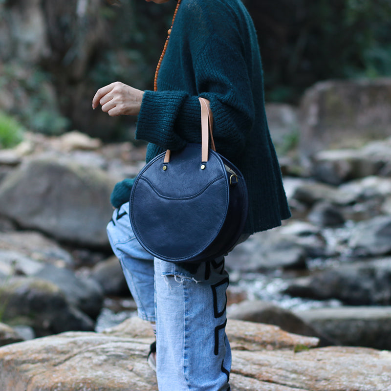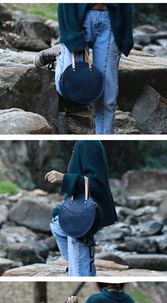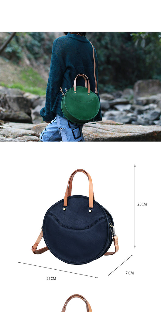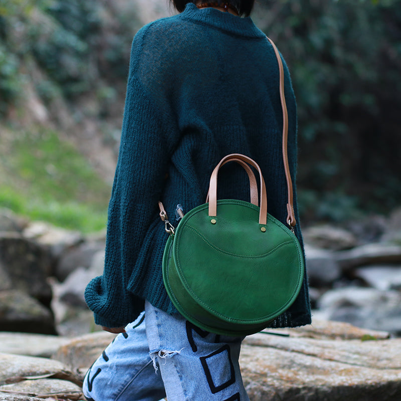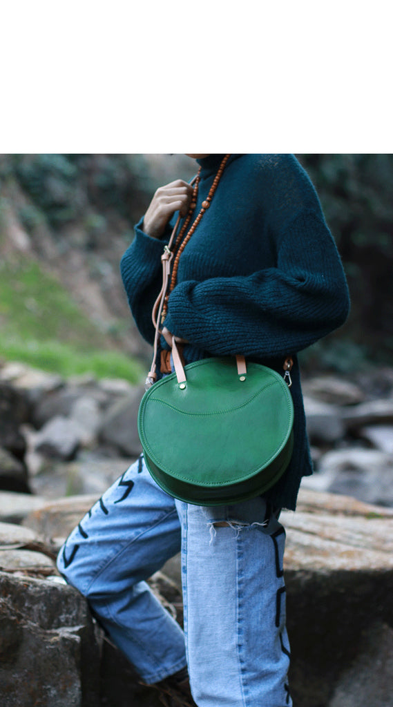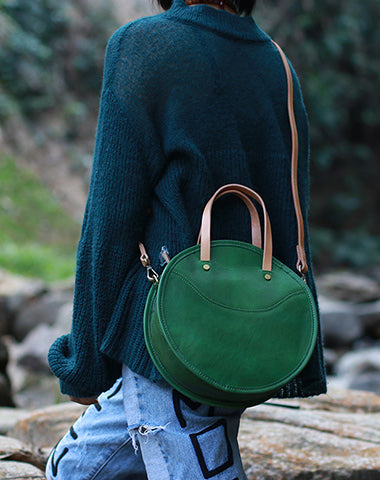 Style: Vintage Womens Green Leather Round Handbag Purses Green Round Shoulder Bag Crossbody Purse for Women