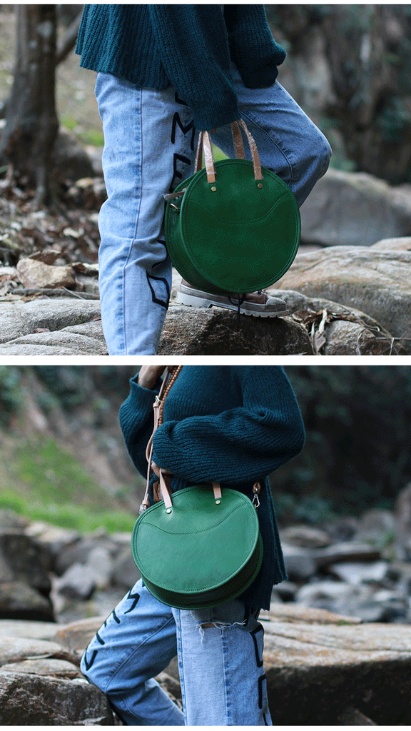 Design: Vintage Womens Green Leather Round Handbag Purses Green Round Shoulder Bag Crossbody Purse for Women
