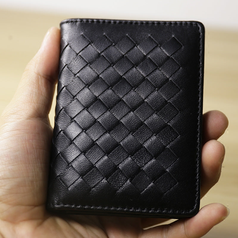 Style: Women Black Braided Leather Billfold Wallet Small Wallets Bifold Wallets For Women