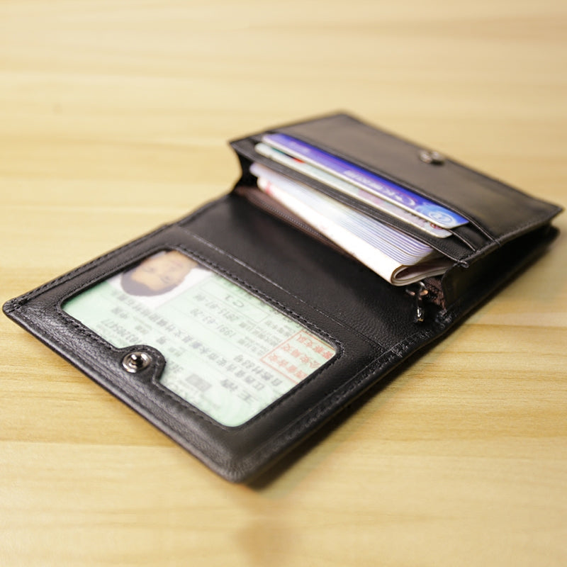 Slots: 1 half-bill slot, 2 card slots, 1 zip slot, 1 license slot