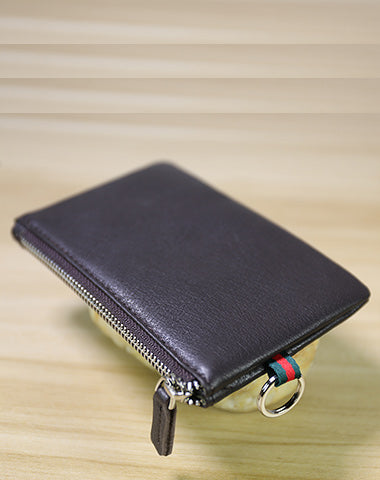 Women Coffee Leather Mini Zip Wallet with Keychain Billfold Slim Coin Wallet Small Zip Change Wallet For Women