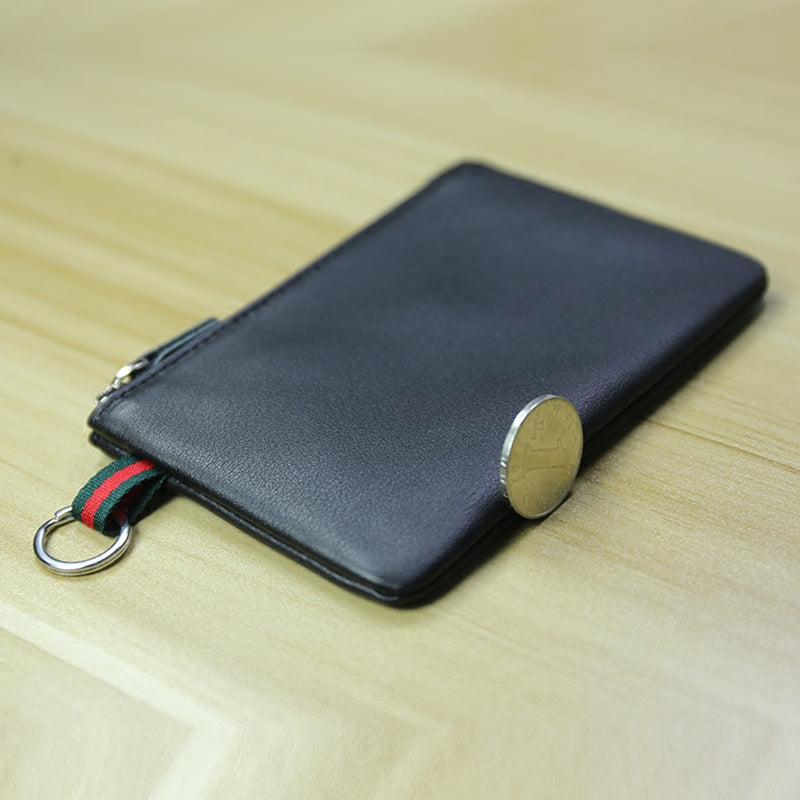 Design: Women Leather Mini Zip Wallet with Keychain Billfold Slim Coin Wallet Small Zip Change Wallet For Women
