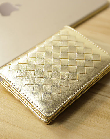 Women Gold Braided Leather Billfold Wallet Small Wallets Bifold Wallets For Women