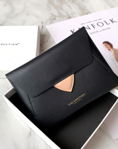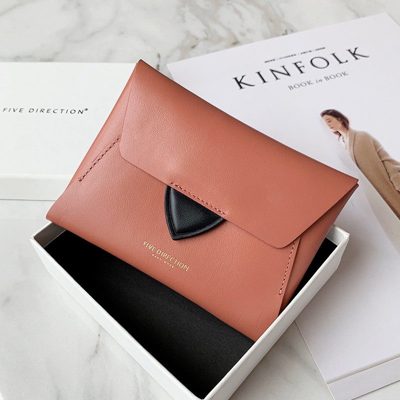 Style: Women Gray Pink Leather Small Wallet Envelope Change Wallet Slim Coin Wallet For Women