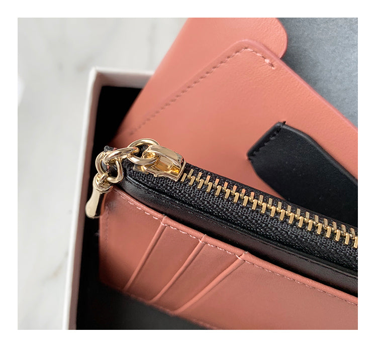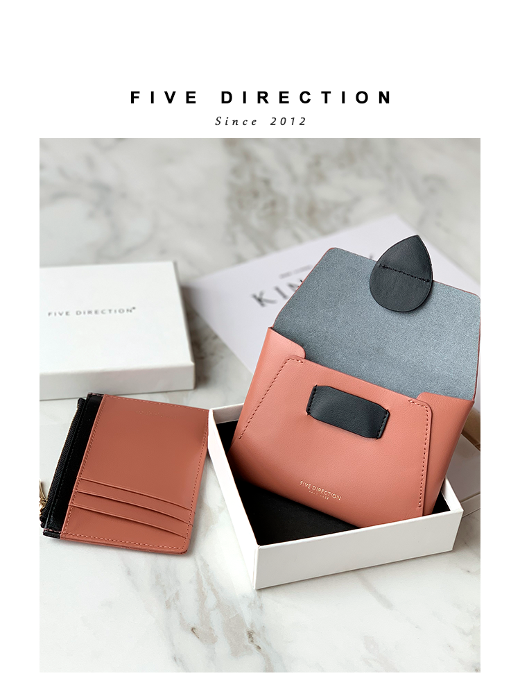 Design: Women Gray Pink Leather Small Wallet Envelope Change Wallet Slim Coin Wallet For Women