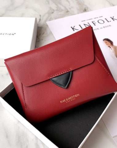 Style: Women Light Red Leather Small Wallet Envelope Change Wallet Slim Coin Wallet For Women