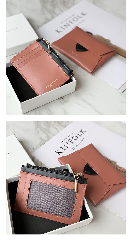 Design: Women Light Red Leather Small Wallet Envelope Change Wallet Slim Coin Wallet For Women