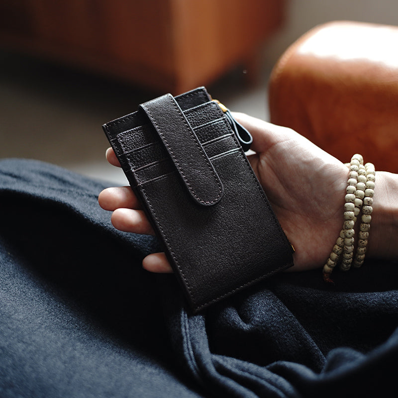 Slots: 1 zip slot, 9 card holders, 1 license holder