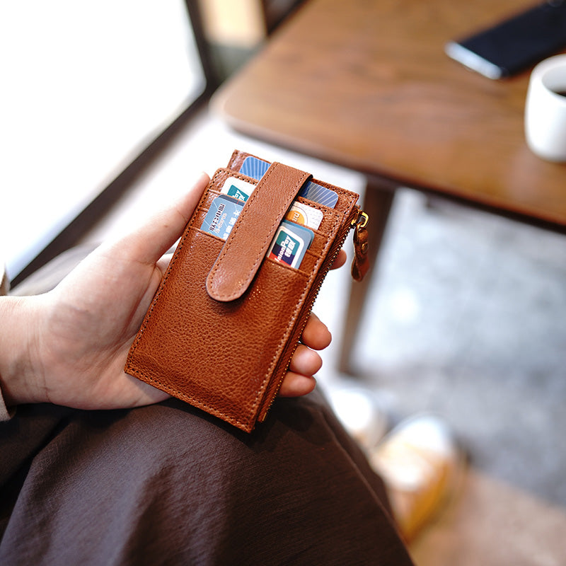 Design: Womens Brown Leather Card Holders Wallet Slim Billfold Wallet Card Holders for Ladies