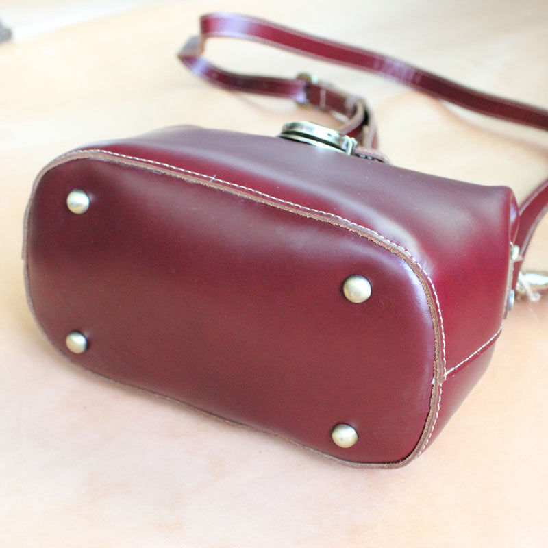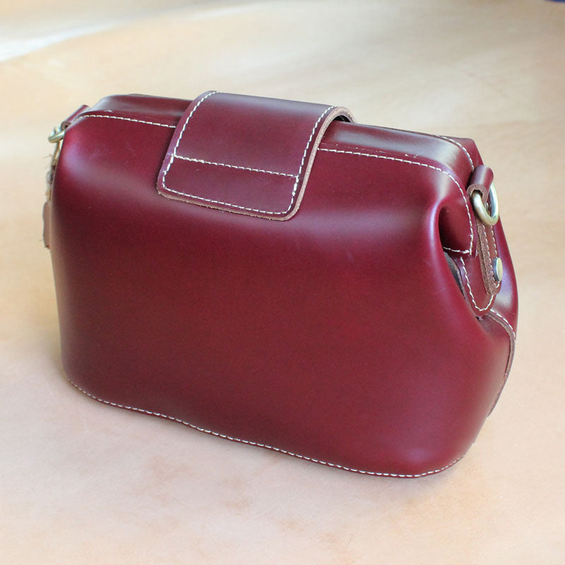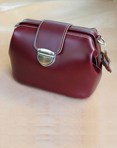 Style: Handmade Womens Red Leather Doctor Shoulder Purses Claret Doctor Crossbody Purses for Women