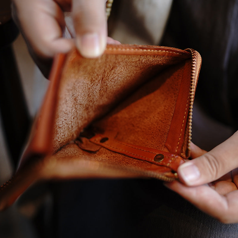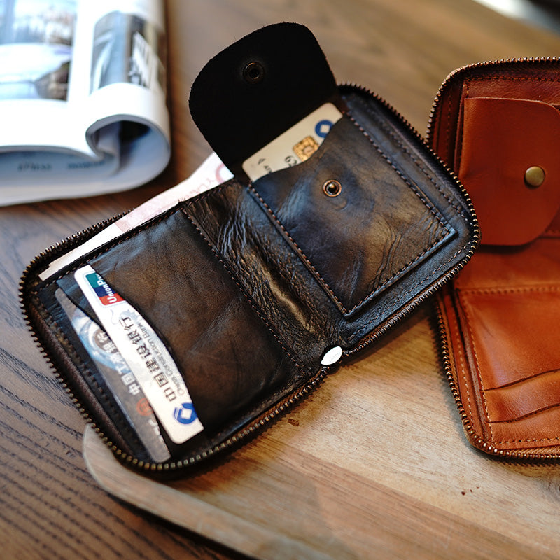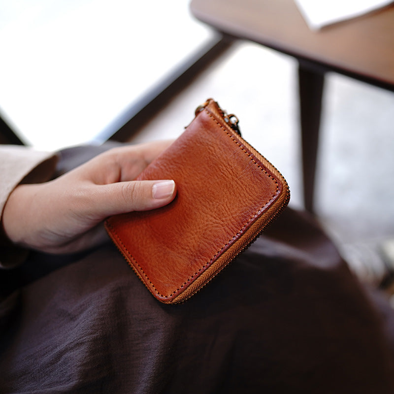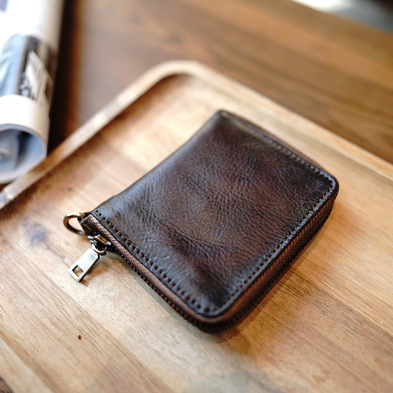 Design: Zip Women Brown Leather Billfold Wallet Small Zip Wallets Around Zipper Wallets For Women